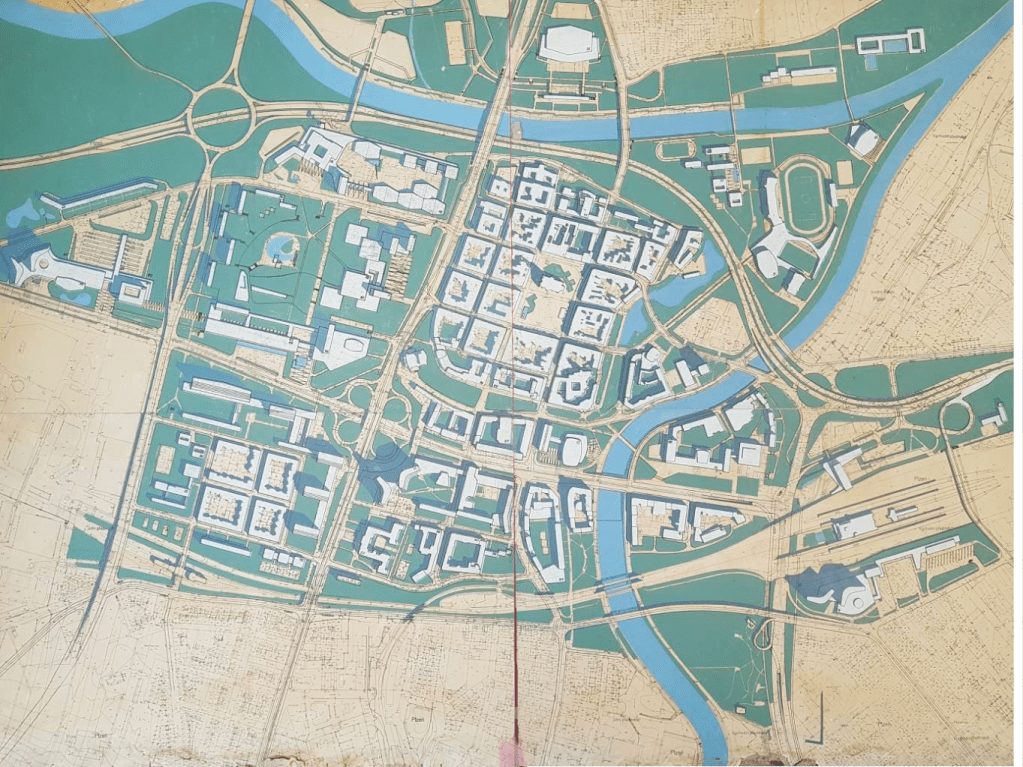 Studie přestavby centrální části Plzně ze 60. let. Kromě historického jádra měla být veškerá ostatní zástavba zbourána (protože je neekonomická, hygienicky závadná a nevyhovující) a nahrazena moderním zářícím zahradním automobilovým městem. Průtah I/5 přímo centrem města, mimoúrovňové superkřižovatky u Kalikovského mlýna a Americká/Klatovská.