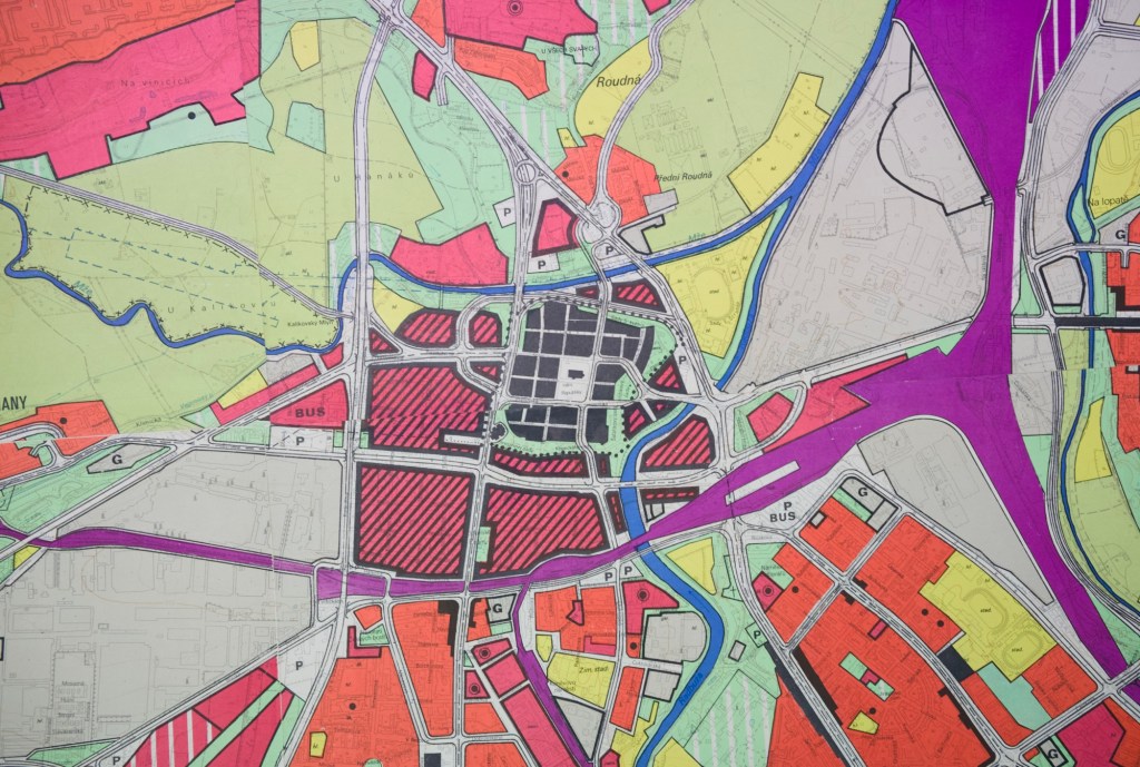 Centrum Plzně podle územního plánu z roku 1988, posledního komunistického.